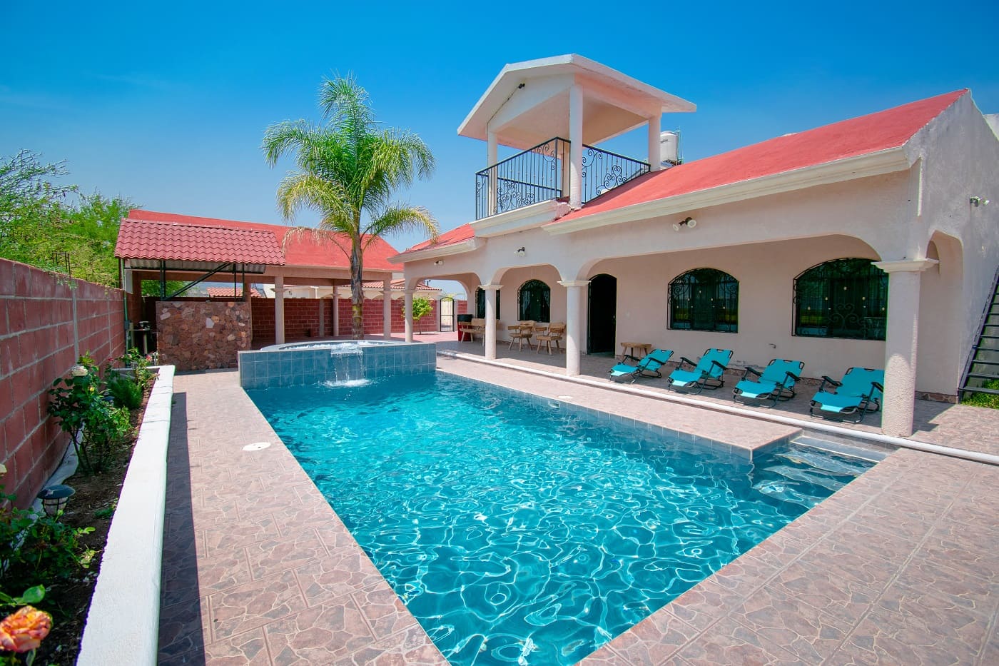 Hasta 25 personas. - Esplendida alberca con luces de colores de 1.50 metros de profundidad.