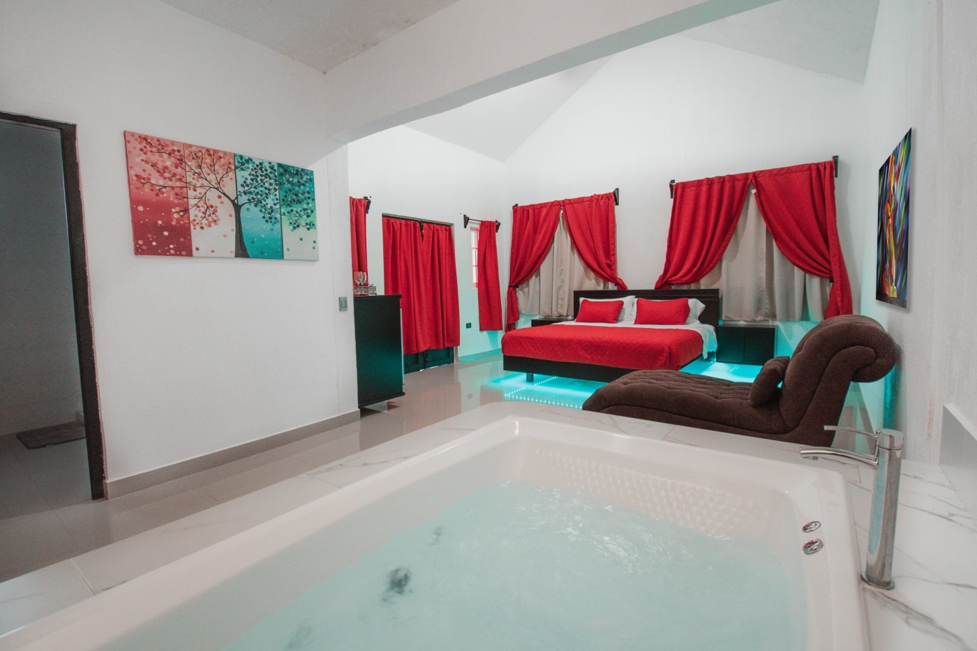 - Jacuzzi romántico con luces dentro de la misma habitación.